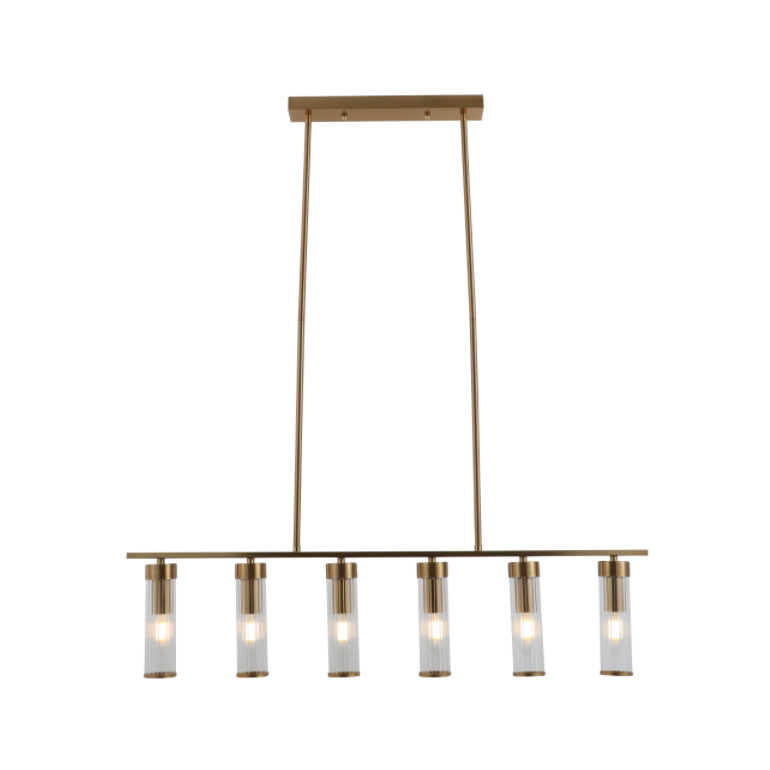 இந்த உன்னதமான சரிசெய்யக்கூடிய உயர நேரியல் கண்ணாடி பதக்க ஒளி நவீன, தொழில்துறை மற்றும் குறைந்தபட்ச அலங்கார பாணிகளுடன் இணக்கமானது. சாப்பாட்டு இடங்களின் வளிமண்டல உருவாக்கம் மற்றும் செயல்பாட்டு விளக்கு தேவைகள் இரண்டையும் பூர்த்தி செய்ய பாரம்பரிய ஒளி விளக்குகள் அல்லது எல்.ஈ.டி பல்புகளுடன் இதைப் பயன்படுத்தலாம். குறிப்பிடத்தக்க வகையில், தயாரிப்பு மட்டு கலவையை ஆதரிக்கிறது (6 முதல் 8 விளக்கை சாக்கெட்டுகள் வரை தனிப்பயனாக்கக்கூடியது), வாங்குபவர்களுக்கு மிக மாறுபட்ட முனைய வாடிக்கையாளர் கோரிக்கைகளை மிகச்சிறிய சரக்குகளுடன் மறைக்க உதவுகிறது.