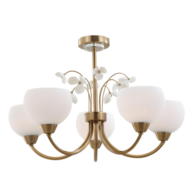 பல்துறை சூழ்நிலை: கிளாசிக் காப்பர் 5-கண்ணாடி உச்சவரம்பு ஒளி சுத்திகரிக்கப்பட்ட விளக்குகள் தேவைப்படும் இடங்களுக்கு ஏற்றது (எ.கா., படுக்கையறைகள், ஹோட்டல் அறைகள்).