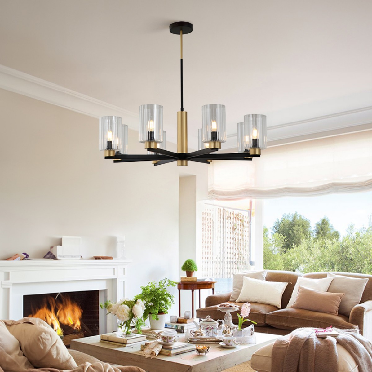 இது ஒரு மினிமலிஸ்ட் பிளாக் மெட்டல் சாண்டிலியர் ஆகும், முதலில் சீனாவின் குவாங்டாங்கில் உள்ள ஒரு தொழில்முறை ஏற்றுமதி தொழிற்சாலையான Zhongshan Strong Lighting என்பவரால் வடிவமைக்கப்பட்டது. இந்த வடிவமைப்பின் சிறப்பம்சம் கருப்பு மற்றும் வர்ணம் பூசப்பட்ட தங்க வன்பொருளின் புத்திசாலித்தனமான மோதல் ஆகும். உலோக விளக்கு உடல் மற்றும் விளக்கு வைத்திருப்பவர் உணவுகள் இரண்டும் நேர்த்தியான பள்ளங்களைக் காட்டுகின்றன. கூடுதலாக, கையால் ஊதப்பட்ட கண்ணாடி பள்ளங்களையும் அளிக்கிறது, இதனால் தெளிவான கண்ணாடி பலவிதமான ஒளியைப் பிரதிபலிக்கும். ஒட்டுமொத்த வடிவமைப்பு குறைந்த முக்கிய மற்றும் ஒருங்கிணைந்த அழகியலை வெளிப்படுத்துகிறது. புதிய அமெரிக்க மினிமலிஸ்ட் பிளாக் மெட்டல் சாண்டிலியர் சேகரிப்பில் சுவர் விளக்கு, 3-விளக்குகள் பதக்க விளக்கு, 5-விளக்குகள் பதக்க விளக்கு மற்றும் 8-விளக்குகள் பதக்க விளக்கு ஆகியவை அடங்கும்.
