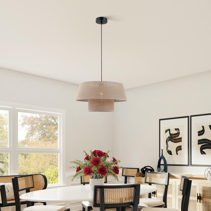 சமீபத்தில் சீனா உற்பத்தியாளர் ஸ்டிராங் லைட்டிங் வழங்கிய, இரண்டு அடுக்கு சணல் கிச்சன் பதக்க விளக்கு உட்புற அலங்காரத்திற்கு ஒரு பழங்கால மற்றும் வசதியான அதிர்வைக் கொண்டுவருகிறது. 1M நீளத்தில் ஒரு நெகிழ்வான கருப்பு தண்டு விளக்கின் உயரத்தை சுதந்திரமாக சரிசெய்து அதை ஒரு பதக்க விளக்காக பயன்படுத்த அனுமதிக்கிறது. அரை பறிப்பு விளக்கு பொருத்துதல். நீங்கள் அதை ஒரு சாப்பாட்டு மேசைக்கு மேலே தொங்கவிடலாம், வாழ்க்கை அறையின் ஒரு மூலையில் வைக்கலாம் அல்லது படுக்கையறையில் கூட தொங்கவிடலாம். இது ஒரு செயல்பாட்டு தயாரிப்பு அல்ல, ஆனால் உங்கள் வீட்டில் அலங்காரத்தின் ஒரு பகுதியாகும். இரண்டு அடுக்கு சணல் சமையலறை பதக்க விளக்கு இரண்டு வெவ்வேறு அளவுகளைக் கொண்டுள்ளது, மற்றொன்று 300MM விட்டம் கொண்ட சிறியது.